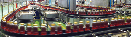 生產(chǎn)線運行效率的高低,與輸送線的配置有很大的關(guān)系。在輸送線的配置上須考慮到后段設(shè)備短暫停機(例如:更換標(biāo)簽等)時,對前段設(shè)備的運行不能產(chǎn)生影響,同時應(yīng)該能將前后段的設(shè)備良好的銜接在一起,才能使整條生產(chǎn)線達(dá)到較高的運行效率。我司的生產(chǎn)線布置充分考慮了客戶投資與生產(chǎn)線使用效率的相互關(guān)系,在引進國外技術(shù)的基礎(chǔ)上,可以很好的達(dá)到上述要求。該系統(tǒng)采用國外先進技術(shù),機械結(jié)構(gòu)為全新設(shè)計,多數(shù)構(gòu)件采用沖壓或折彎成形,具有剛性好 、重量輕 、互換性好的優(yōu)點。傳動方式,運轉(zhuǎn)可靠,維修方便,適用于輸送直徑φ40~φ110 mm瓶子。無壓力輸送系統(tǒng),依靠實時速度信號采集和反饋及自動差速控制系統(tǒng),能夠?qū)崿F(xiàn)輸送帶上的瓶在運動狀態(tài)中由多列平穩(wěn)變更為單列,而不出現(xiàn)相互擠壓現(xiàn)象。 電氣控制系統(tǒng)采用PLC控制整個實瓶輸送緩沖系統(tǒng)的運行,自動實現(xiàn)運行速度加減速、自動緩沖的功能。
